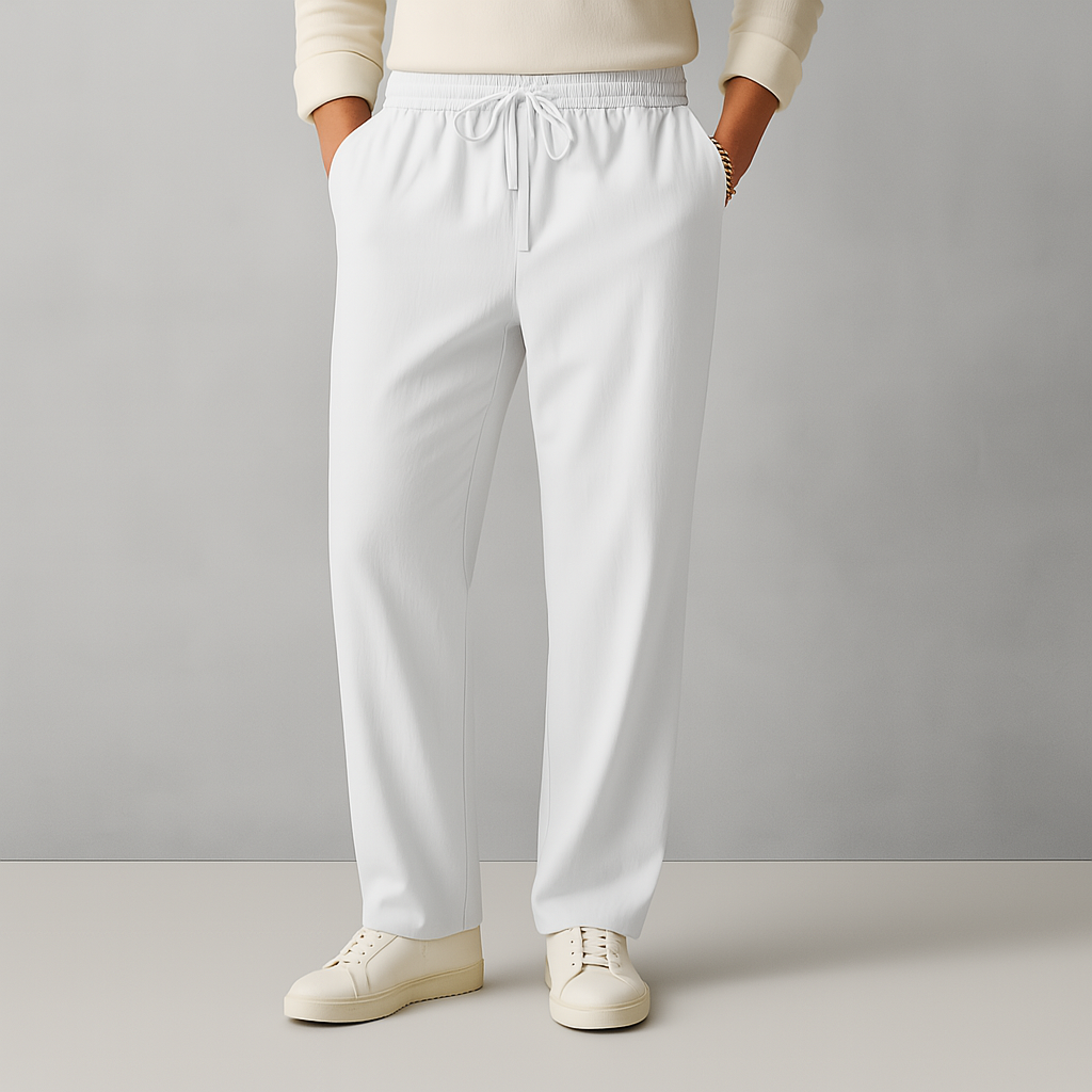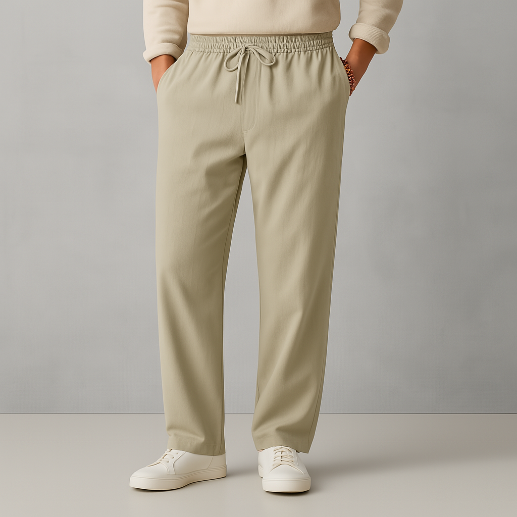 Fabriqué en lin léger, ce pantalon est doux, respirant et léger par temps chaud. Des poches profondes et une taille à cordon de serrage les rendent aussi fonctionnels que confortables.
